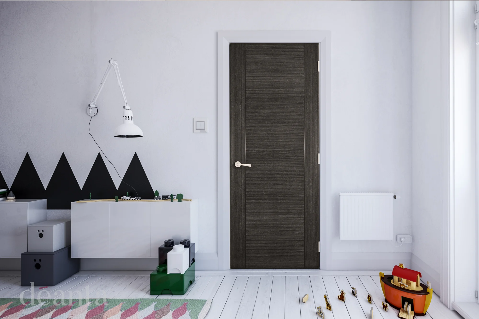 Ideally suited to a contemporary-style home, the prefinished Montreal dark grey ash Internal door provides a stunning contrast to light decor. The solid door brings with it a sense of neutral permanence.