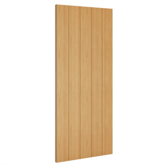 With beautiful crown cut oak veneer overlaying a solid core, the Galway oak door is the perfect combination of strength and good looks. The solid door consists simply of five vertical panels created by intricate grooves that showcase the glorious oak veneer grain. Use hard wax oil on this unfinished oak door to emphasise the grain and promote its natural characteristics.