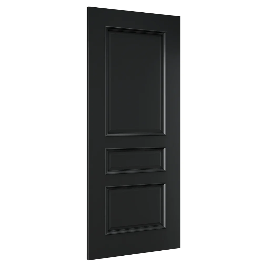 The Windsor black prefinished door has three elegant bevelled-edged panels that inject character into any setting. Ā In this glazed option, the top panel is replaced with a pane of bevelled-edge glass, echoing the design of each panel and framed with intricately detailed mouldings.