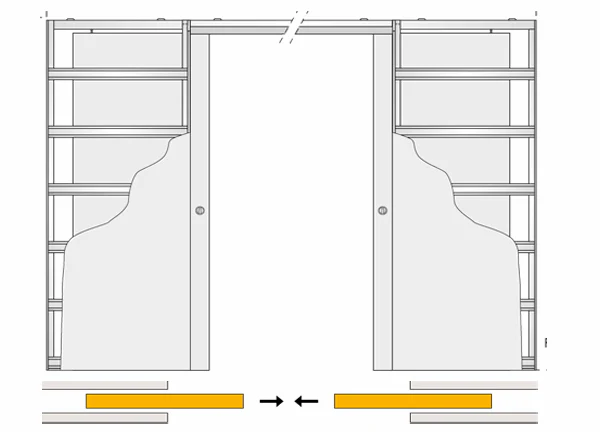- Double architrave-less pocket door system available in a range of standard Imperial and Metric size doors, 35mm, 40mm or 44mm thickness